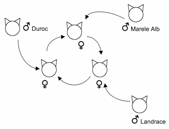 liniile pure, inmultirea si simpla hibridare. In acest caz livreaza scroafe simplu hibride si vieri tati de porci hibrizi de ingrasat.