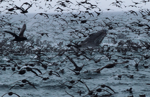 Se stie ca balenele-cu-cocoasa colaboreaza - de pilda, cānd īsi īcoltesc prada īn teritoriile unde se hranesc vara. Unele coopereaza pentru a māna pestii spre coralii stralucitori formati chiar din bulele de aer provocate de balene; apoi se ridica īmpreuna printre bancurile argintii, cu gurile larg deschise. Īn alte momente, balenele par sa colaboreze pentru a māna pestii sau krillul spre tarm sau spre desisuri de varec. Unii observatori au raportat ca mici grupuri se grabeau sa alunge balene-ucigase care hartuiau o balena-cu-cocoasa singuratica, de parca ar fi luat o decizie colectiva de a-i sari īn ajutor. Din nou, nimeni nu e sigur ce anume se petrece de fapt īn creierul mare si īncretit al animalelor. Dar īncercarea de a īntelege mamiferele dintr-un mediu atāt de diferit de al nostru face parte din atractia acestei frontiere oceanice. Balenele au un mod de a transforma īntrebarile despre natura īn īntrebari despre natura cunoasterii si despre modul īn care creierul omului interpreteaza lumea.