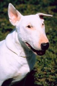 Bull Terrier-ul este intalnit in doua varietati: alb si colorat. Creat prin