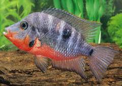 Este o specie raspandita printre acvaristi. Este un ciclid foarte frumos, placut pentru crestere si reproducere in acvarii. Seamana putin cu bibanul din apele noastre. Are corpul turtit lateral si relativ inalt. Capul este mare, aripioara dorsala destul de inalta, bine dezvoltata, pectoralele in forma de secera, de asemenea mari. Masculii sunt mai lungi decat femelele. Partile laterale ale pestelui sunt de culoare verde-violacee, uneori verde mai pronuntat, abdomenul fiind rosu. La mijlocul corpului si la baza cozii se observa cate o pata frumoasa, negricioasa, iar pe opercul alta de un verde-galbui, tivita cu galben-auriu. Irisul este de un verde intens. Partea pectorala este purpurie. Corpul pestelui are dungi verticale spalacite. Se hraneste in special cu hrana vie. Atitudinea pestelui fata de plantele din bazin este mai pasnica: daca au fost sadite si radacinile s au fixat, nu le deranjeaza.