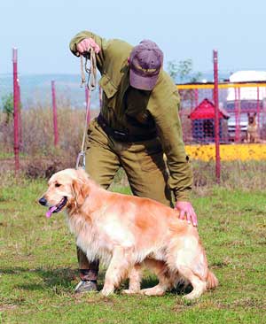 dar ferme, în sens opus, utilizând zgarda de dresaj strangulanta din