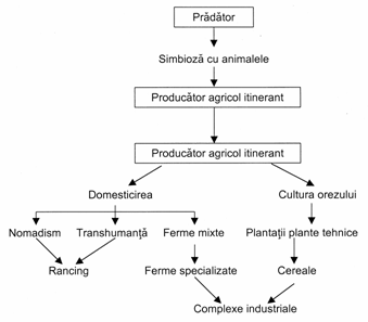 Constatarea ca in neolitic mai intai au fost luate in cultura cateva specii importante de plante, sprijina teoria lui Ratzel si Hahn (Grigg, 1977), conform careia domesticirea a fost facuta nu de vanatori sau culegatori (pradatori), ci de agricultori specializati (producatori). Separarea triburilor de pastori de cele de agricultori a avut loc la inceputul epocii bronzului.