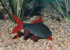 Are corpul de un negru catifelat si caudala rosie ca flacara. Exista si o varietate de culoare verde. Gura seamana cu a mrenei, fiind adaptata pentru colectarea hranei de pe fundul bazinului. Labeo b. este preferat de acvaristi pentru obiceiul de a curata cu gura frunzele late ale plantelor acvatice, geamurile acvariului, pietrele din bazin si algele verzi care se depun.