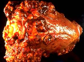 Localizarea leziunilor la nivelul cordului drept duce la insuficienta cardiaca congestiva, hidropericard cu estomparea zgomotelor cardiace la ascultatie, hidrotorax cu instalarea dispneei, ectazie jugulara cu edemul salbei si uneori intermandibular (.). Aceste simptome pot fi insotite de aritmie si tahicardie. Pulsul jugular retrograd este asociat cu murmurul sistolic. Congestia hepatica pasiva, datorata perturbarilor circulatorii duce la diaree persistenta.