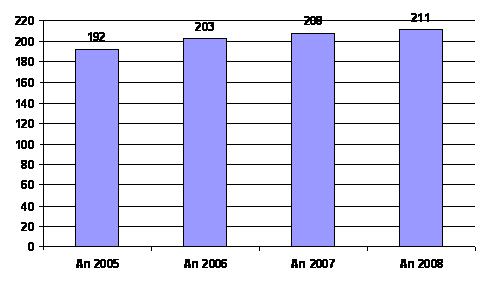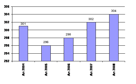 Graficul 1. Evolutia efectivului de bovine in localitatea Boia in intervalul 2004-2008