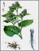 lung potiolate. Flori purpurii cu corolla alungit campanulata, ingustata brusc