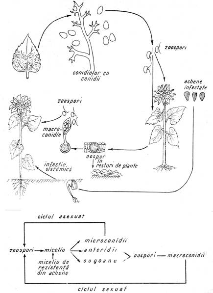 Fig. 46 - Ciclul evolutiv al ciupercii - Plasmopara helianthi