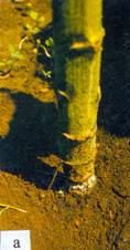La plantele mai dezvoltate este atacata baza tulpinii în regiunea coletului si radacinile.