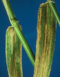 Simptome. Frunzele plantelor atacate prezinta pete de decolorare eliptic 717c25h e, situate intre nervuri, la inceput izolate apoi unite, formand dungi brune. Pe tesuturile brune, brunificate se formeaza un puf catifelat, bruniu, iar frunzele se sfasie in lungul lor. Atacul se poate observa pe pai prin brunificarea internodului terminal si chiar pe spic, care se brunifica, se deformeaza, are pete brune pe glume si palei si formeaza seminte sistave cu pete brune sau, daca atacul se instaleaza in faza de burduf, spicul ramane steril (fig.8).