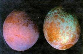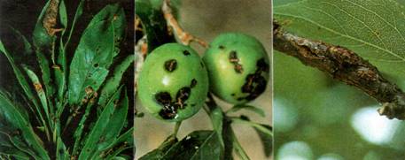 Simptome. Atacul se manifesta pe frunzele si fructele de prun. (Fig. 62)