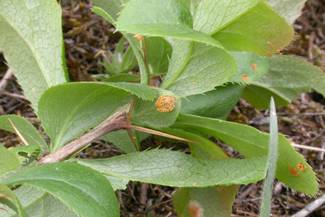Fig. 11 b -Frunza de limba boului(planta gazda) atacata de rugina