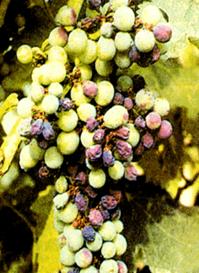 Fig. 17. Putregaiul cenusiu al strugurilor-lastar atacat; ciorchine atacat
