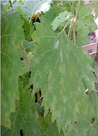 Lastarii nelignificati, prezinta aceleasi pete albicioase, uneori prafoase, sunt opriti din crestere, iar frunzele se incretesc.