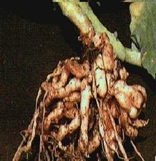 Fig. 13 Hernia radacinilor de crucifere: a-hipertrofieri tip tumoare; b-hipertrofieri tip hernie;
