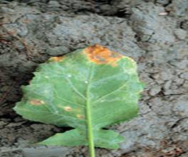 Simptome. Inca din primele faze de vegetatie, pe primele frunzulite apare o decolorare sau brunificare a acestora, urmata de vestejirea plantulelor si caderea lor. Pe frunzele plantelor infectate, apar pete mari neregulate, galbene, in dreptul carora nervurile sunt brunificat 858b15i e si apoi innegrite.
