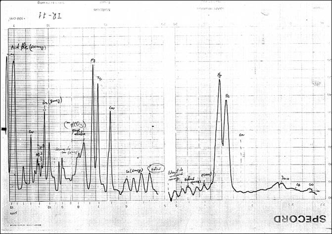 e. Un aspect marcant al analizelor a fost faptul ca in AqD s-au semnalat cantitati diferite ale elementelor si compusilor din mostra de apa. De exemplu magneziu s-a regasit cu 20% mai mult decat in apa normala. Aproximativ la fel s-a depistat si la calciu si fier. Am considerat ca analizele ar fi gresite insa am aprobat si posibilitatea ca aceasta diferenta sa apara datorata unor fenomene pe care nu le explicam satisfacator.