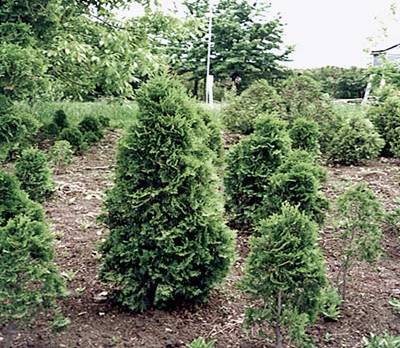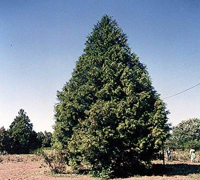 Formeaza o coroana alungit- piramidala, asemanatoare unei coloane ce poate ajunge pana la 15-18m inaltime, cu frunze asemanatoare cu solzii de un verde-inchis, iarna devenind maronii. Se foloseste ca exemplare solitare, in grupuri, aliniamente, in hardaie la decorarea balcoanelor si teraselor