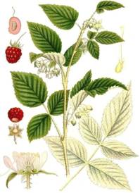 Fig. . a. Rubus idaeus: caractere morfologice (ramuri, frunze, flori, fructe); b. Rubus hirtus: ramura cu frunze si flori; c. Rubus caesius: caractere morfologice (ramuri, frunze, flori, fructe). |
