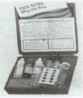 Aceasta consta din doua mini-eprubete si doua fiole de reactiv. 5 picaturi de reactiv A, apoi 5 picaturi de reactiv B, coloreaza in mod diferit apa piscinei pusa in eprubete. Se face o comparatie cu 2 palete de culori-etalon si se stabileste astfel pH-ul si cantitatea necesara de dezinfectant. Este vorba de un procent global care tine cont de produsele combinate, asa ca este aproximativ! Pentru clor sau brom, reactivul 'curent' este ortotolidina. Rezultatul trebuie citit in primele 10 sec. pentru a obtine o concentratie corecta de clor.