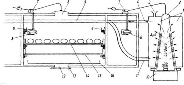 un rezervor pentru apa (cu pereti dubli, confectionat din tabla) si dintr-un cadru dreptunghiular confectionat din teava cu diametrul de 4 6 cm, montat īn partea superioara a compartimentelor, sub tavan.