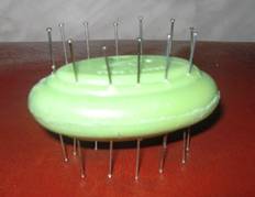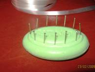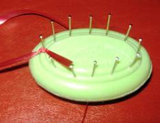1. Se īnfing bolduri īn sapun,dispuse īn cerc, pe ambele fete, la distanta egala.
