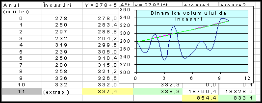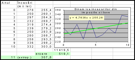 Figura nr.26 Pagina EXEL pentru calculul trendului liniar.
