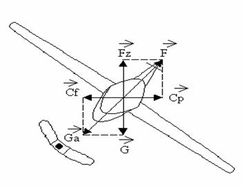 Fortele care actioneaza intr-un viraj glisat In acest viraj viteza de giratie este mica in comparatie cu inclinarea planorului.