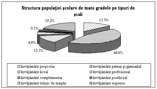 Populatia scolara din invatamantul de toate gradele era de 102.521 elevi distribuiti astfel: