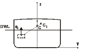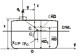 In urma debarcarii unei greutati de la bord, noua pozitie a centrului de greutate pe directie orizontala este data de relatia (fig.2.17):