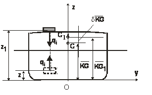 In urma debarcarii unei greutati de la bord, centrul de greutate al navei se deplaseaza. Noua pozitie pe directie verticala este data de relatia (fig.2.17):