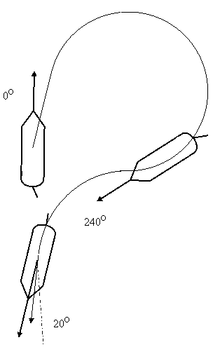 3.a. Dupa o intoarcere de 240o fata de drumul initial: