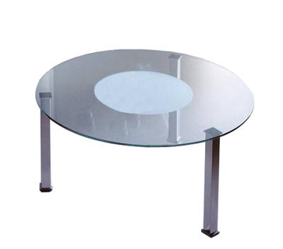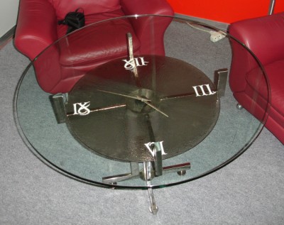 Masa rotunda cu ceas, blat rotund, blat inferior din sticla colorata, design deosebit