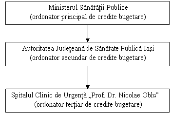 Structura si relatiile existente īntre spital si ordonatorii de credite bugetare ierarhic superiori poate fi evidentiata prin urmatoarea schema: