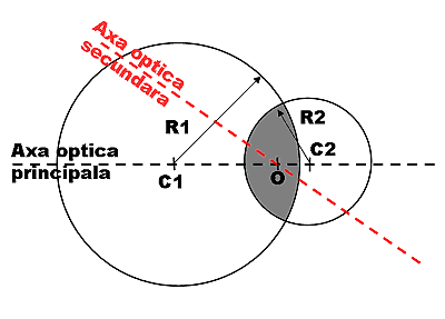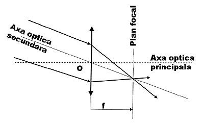 intr-un mediu omogen. f = OF Daca se modifica directia fascicului incident, adica razele vin pe o axa optica secundara, in limitele aproximatilor lui Gauss, focalizarea se va realiza intr-un focar secundar.