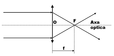 emergente converg intr-un punct F, situat tot pe axa optica, punct denumit focar