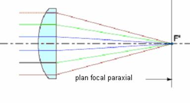 axul optic principal (de la infinit). f = R/2 unde R = raza de curbura a oglinzii De asemenea, se poate demonstra ca pentru grupe de fascule paraxiale, locul geometric al focarelor secundare este un plan perpendicular pe axul optic principal, de aceea denumit si plan focal.