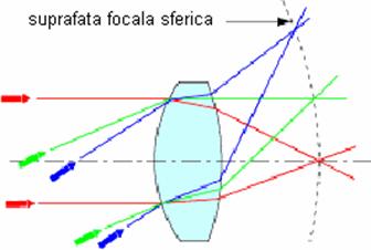 Front de unda ce arata aberatia sferica In imaginea de mai jos observam cum focalizeaza o lentila ideala