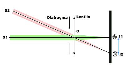 imaginile obtinute sunt in realitate doua pete, I1 si I2, cu centrul mai