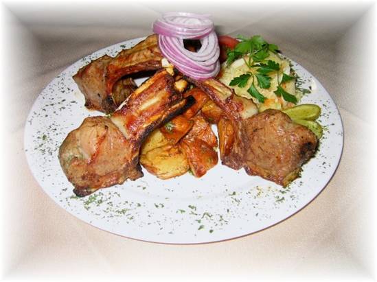 Mod de preparare: Se spala carnea de miel,se das are si se lasa o jumatate de ora.Se aseaza intr-o tava,cu spatele in sus.Se pune o lingura de untura.Se da la cuptor la inceput la foc moale si se unge din timp in timp cu grasime.La sfarsit se intareste focul si nu se mai unge,sa se rumeneasca frumos sis a se intareasca bine coaja.Se taie repede pe fund de lemn si se aseaza bucatile pe farfurie.Sosul care a ramas in tava se curate bine de grasime ,se pune sa fiarba bine cu o lingura de apa,amestecand ca sa se ia rumeneala de pe fundul tavii.Se trece prin sita si se serveste separate.Nu se toarna peste friptura ca sa nu se moaie coaja.Se serveste cu cartofi prajiti si salata verde.