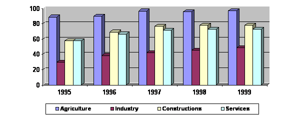 in 1999 si 2,0% in 1990). In domeniul constructilor si serviciilor, sectorul privat a cunoscut cea