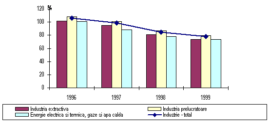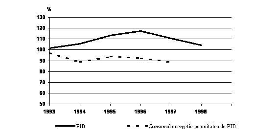 ponderii consumurilor intermediare. Ritmul mediu anual de crestere a PIB a fost de –2,7% in perioada 1990 – 1998,