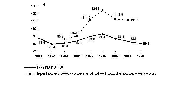 comparativ cu anul 1990, ca urmare a reducerii volumului de activitate si deci a valorii adaugate brute din economie.