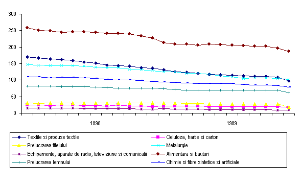 principalele ramuri ale economiei, concomitent cu scaderea productivitatii muncii si