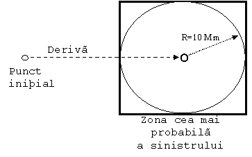 Zona cea mai probabilă a sinistrului (Figura 1) este aria cu centrul în datum, în interiorul căreia se poate afla obiectul căutat, datumul fiind corectat functie de erorile probabile în comunicarea pozitiei sinistrului si estimarea derivei din zonă.