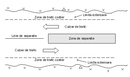Aceasta metoda foloseste pentru a separa traficul costier de traficul de larg, acesta din urma fiind reglementat printr-o zona de separatie (v.fig.14.4).
