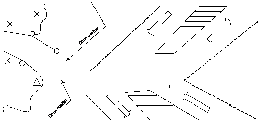 Manevra se executa prin încrucisarile si jonctiunile de drumuri create la întâlnirea a doua scheme de separare a traficului (v.fig.14.7).