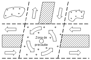 Manevra se executa prin zone de precautie în puncte de convergenta, sens giratoriu, jonctiune (v.fig.14.9).