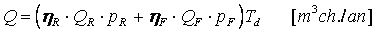 unde avem:hF hR - randamentul de debitare al foioaselor sau rasinoaselor, in m3 ch./ m3 bus.;QR, QF - capacitatea de productie pentru rasinoase sau foioase, in m3 bus. / an;Td - timp disponibil, in sch. / an.
