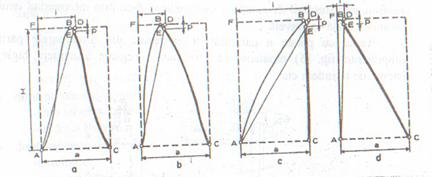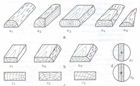 Fig. 28. Deformații ale pieselor de cherestea: a-curbura; b-bombarea; c-arcuirea ; d-rasucirea.