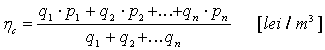unde avem: q1, q2, …, qn sunt volumele diferitelor sortimente de cherestea, in m3;